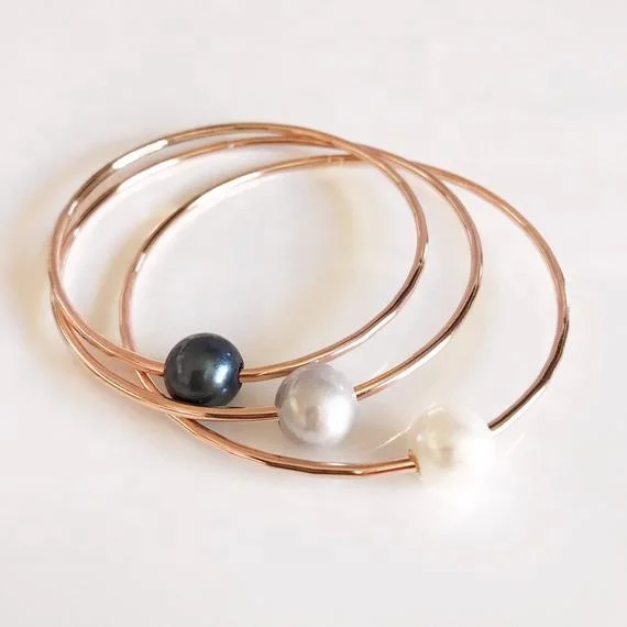Freshwater Pearl Bracelet Adjustable Minimalist Handmade Tarnish Free Open Design Fashion Jewelry Women Hawaiian Bangle Custom